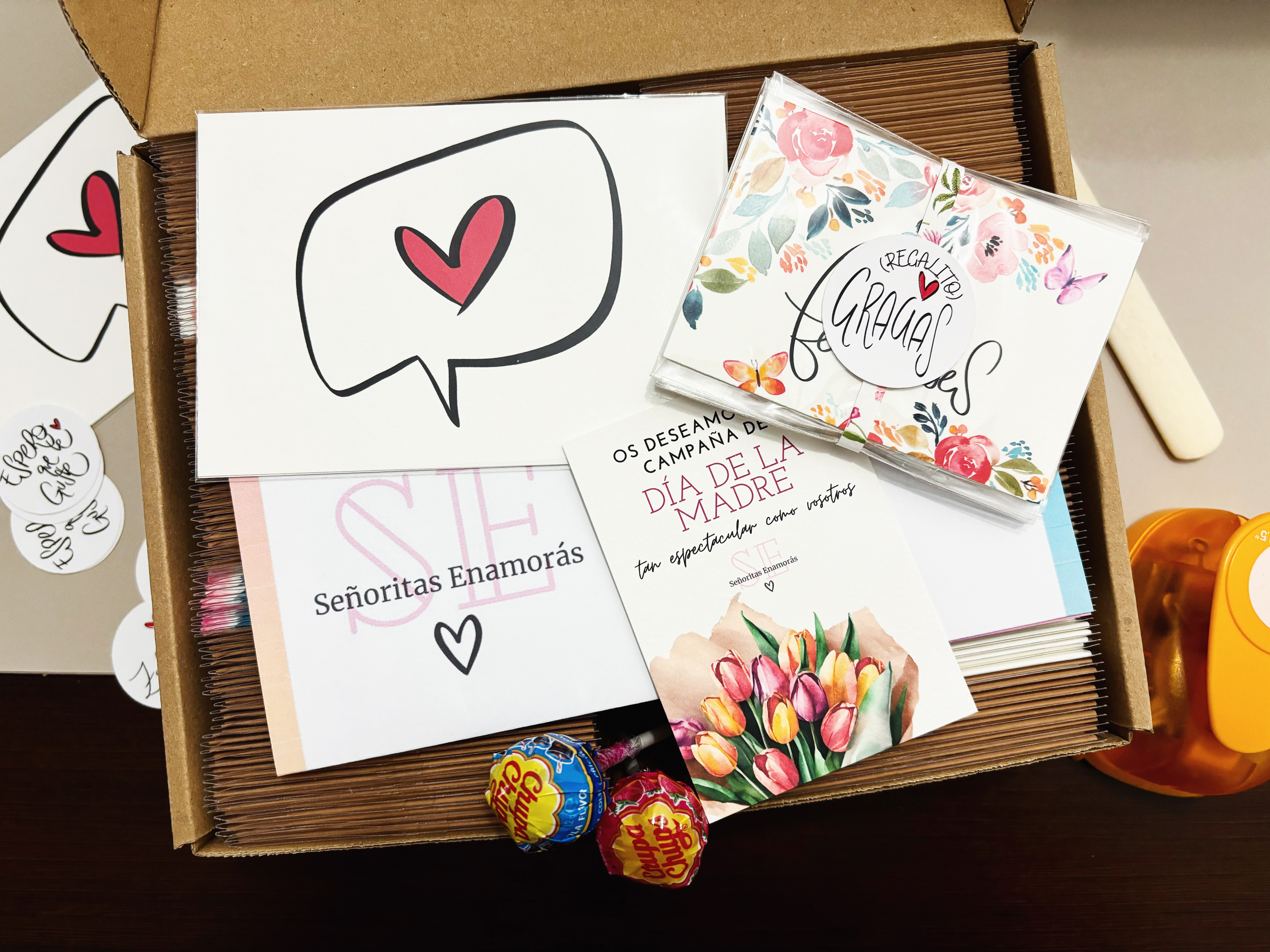 Somos Señoritas Enamorás y hacemos tarjetas de felicitación de forma artesanal con papeles